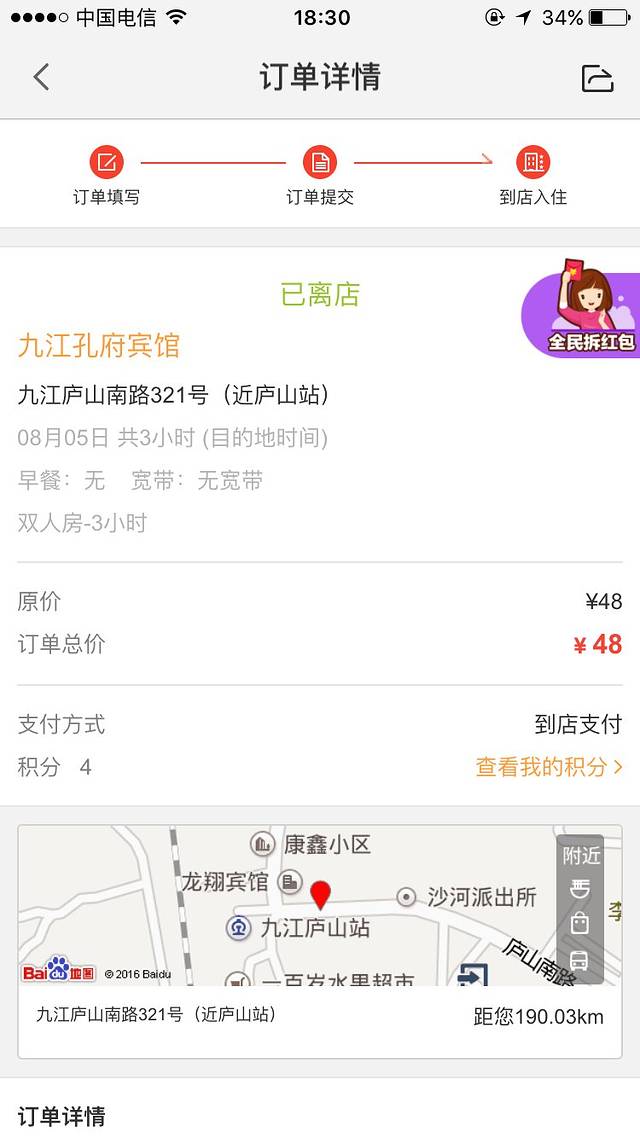 在网上预订了一间钟点房,孔府宾馆,48元3小时,当地消费不贵