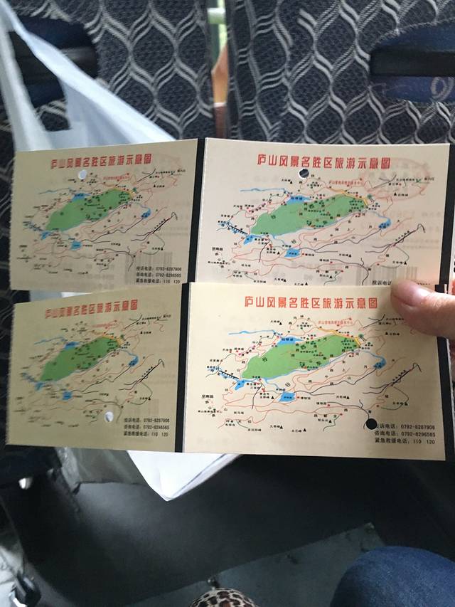 大巴开到山上北门游客换乘中心时,乘客都下车,买进庐山的大门票,司机把车开到二楼,等候乘客购完票后再上车坐回原座位,10分钟时间购票,我在网上买好了两张成人票,因为有优惠,正价旺季180元,然后在9号窗口兑换好了,再去其他窗口凭学生证和小孩身份证或户口簿买了学生票,半价90元
