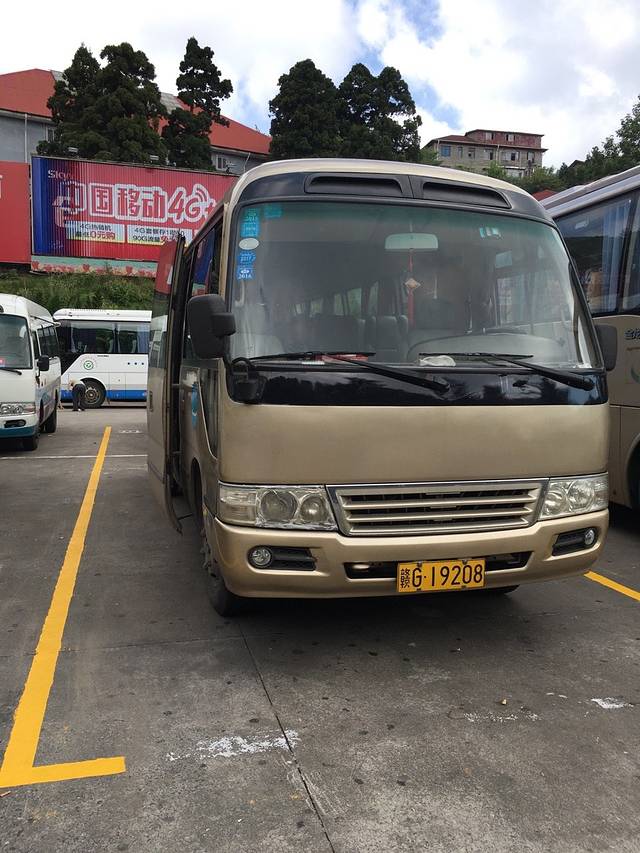 窗口购票,好像只能现金,没有刷卡和网付设施,九江到牯岭镇,票价15.5,大巴13:40发车,小巴随时坐满走人,没有座位号,好像要去验票口排队工作人员手写编号,于是我们选择坐大巴上山,座椅宽敞,按班次发车,11:00以后最早的一趟就是13:40发车了