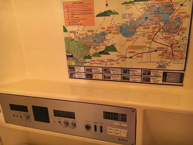胶囊仓内部,右侧墙壁插座和灯还有河口湖地图