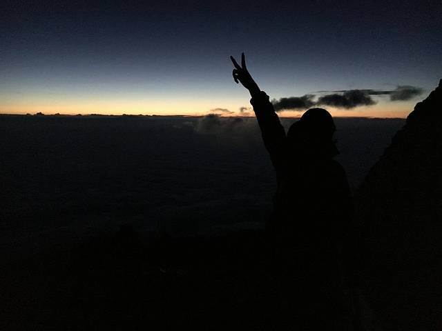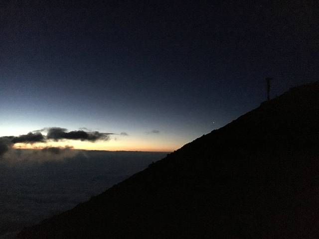 到了八合目!这时候的感觉只有累和困,也是最挣扎的时候,每一步都觉得沉甸甸的,还好有小伙伴的一路鼓励