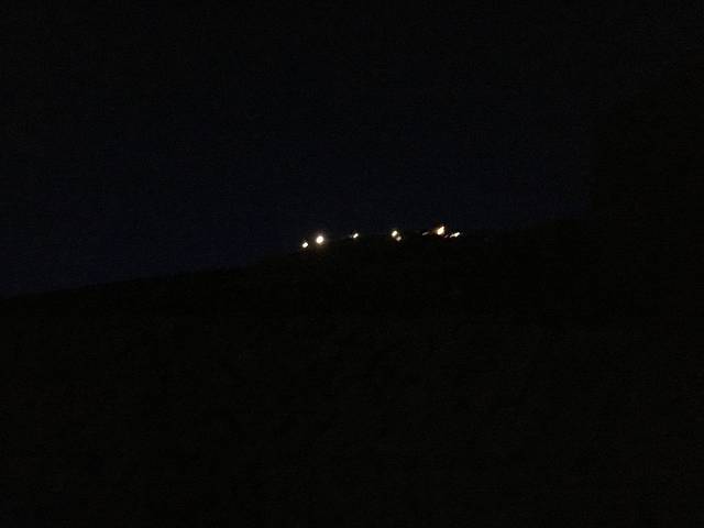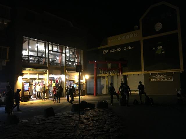在六合目停了一会,由于小伙伴穿的太少了,我们很快就又出发了,这时候天上的星星稍微多了起来,但无奈手机照不出效果,只能照一照山上山小屋传下来的光芒啦,六合目和七合目只有到合目才会有山小屋和面馆,不过刚走几步应该也不会太累,登山手册上写五合目到六合目和六合目到七合目都要1个小时,而我们五到六只用了半个小时,六到七时间会多些吧,但也不到1个小时