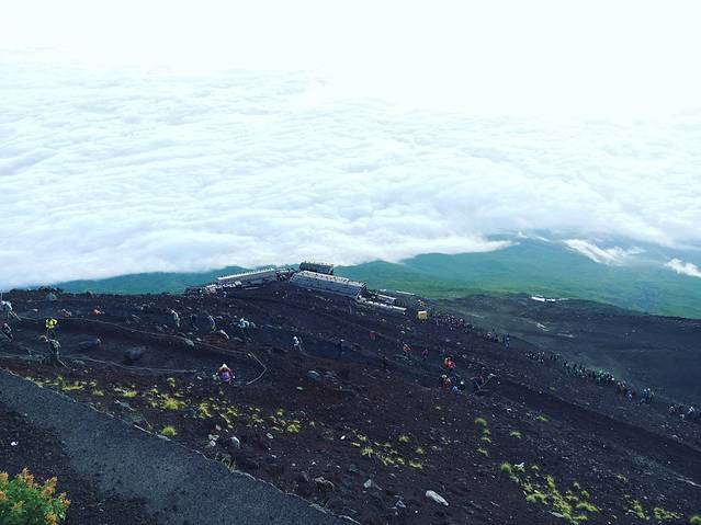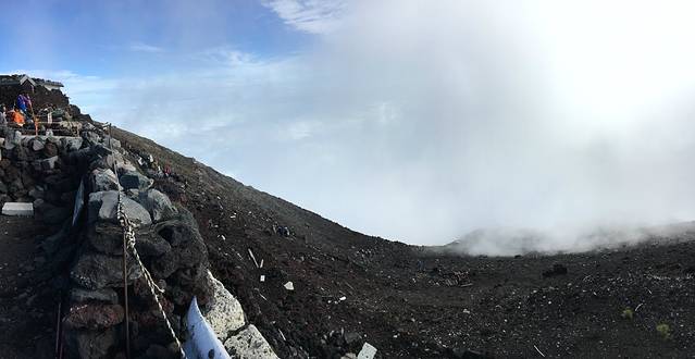 五合目高2305米,有邮局,纪念品店,餐厅,旅馆和停车场,还有卖各种登山用具