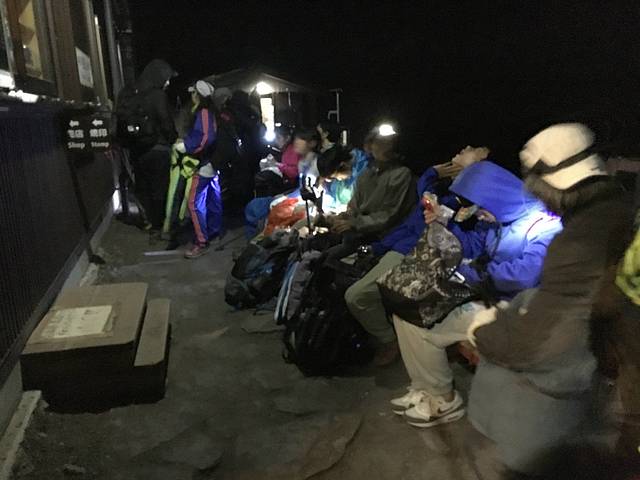 这个时候应该还在到八合目的路上没有到八合目,从七合目到八合目算上七合目救护所的话一共有10个可以休息的地方,所以累了的时候千万不要逞强,毕竟连夜登山很危险,实在挺不住的话就去山小屋休息一下