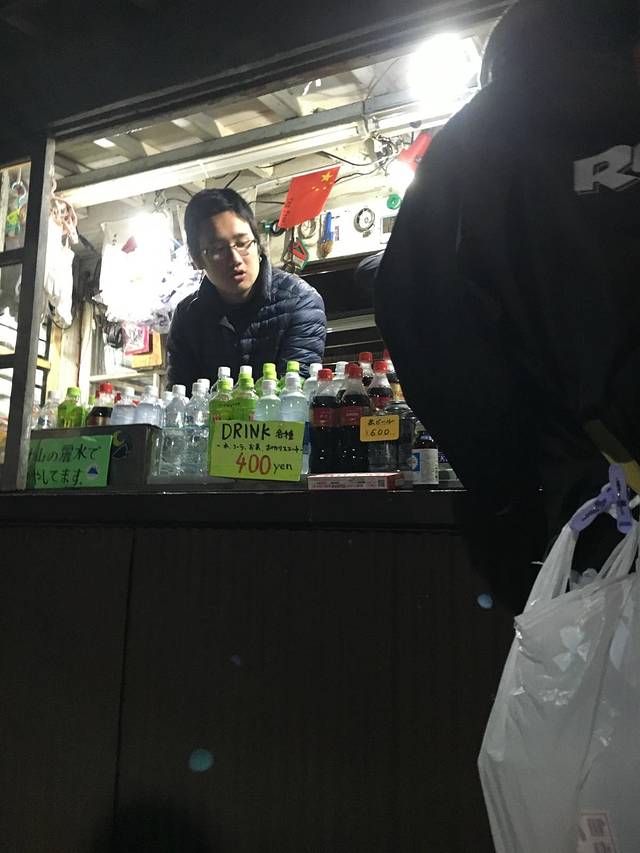 路过的一个山小屋,店主是两个特别能侃的日本人,从我经过他们家店开始就一直招呼我们进去,我觉得很有意思,就干脆坐在他们店前,抬起头才看见那支五星红旗,在这无尽的黑夜,异国他乡,筋疲力尽之时,猛然看到自己国家的国旗,即使不是十分热血之人也有一些感动,正巧这时店主正问我从哪里来,我指了指那旗,那人也笑了,“啊,球够酷金啊(中国人日语)”