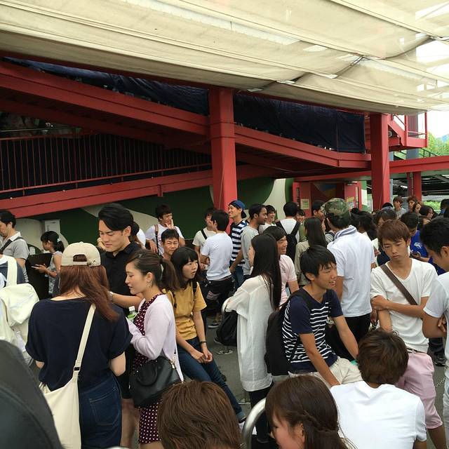 我们就是彻彻底底的去晚了的反例,到哪里都在排长队,EEJYANAIKA排了2个小时,不过还好有小伙伴陪伴,聊聊天,玩了会游戏时间就过去了,这里的经验是如果你去晚了的话,就不要想着玩全所有了,可以利用富士急官网查排队最短的大项(四个过山车,绝地尖叫,绝望要塞)玩完再查,以此类推,选时间最短的,过山车不建议全做,鬼屋和迷宫是要去的,因为一天越往后排的队伍会越长(到晚上另说),大项过瘾以后可以选几个排队较少的小项歇一歇,到晚上人少的时候若还有时间就可以再排个大项弥补遗憾,总之,先玩,再逛!