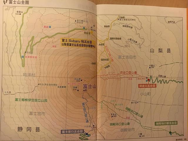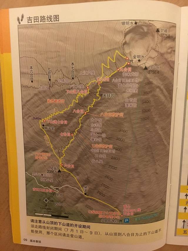 富士山从山脚到山顶,共划分为10个阶段,每个阶段是一个“合目”,由山脚下出发到半山腰称为五合目,由五合目再往上攀登,便是六合目、七合目,直至山顶的十合目。每合目都设有供游人休息的地方