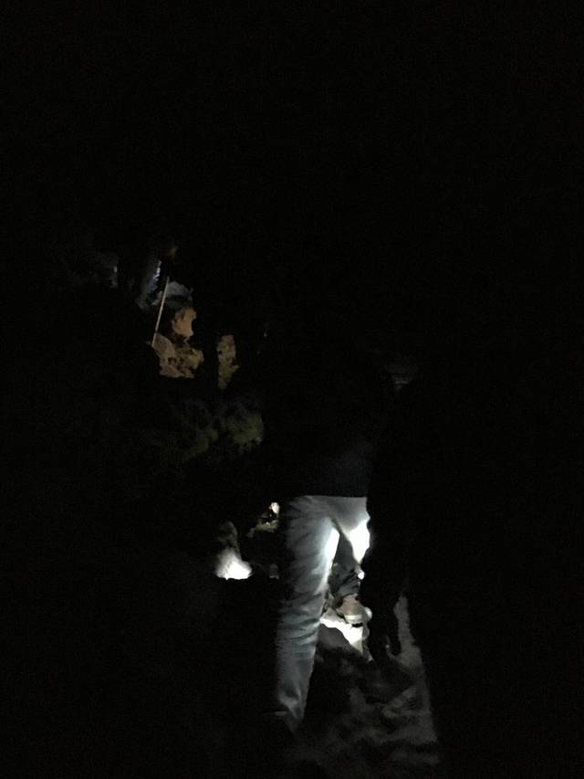 路变得越来越抖,只能靠徒手攀爬,也开始觉得路越来越长,体力有些消耗,但是遇到的人也越来越多,由于我们没有带头灯,没有手,手机的手电筒也无用武之地,会有许多在前面休息的人善良的给我们照路,路非常窄,即使我在前面爬的很慢,后面的人也只是耐心的等待,没有催促,甚至还在给我打光,遇到路旁休息的人,或者偶尔超车而过的人,会经过你的身边和你说,小心!加油!那种感觉真的特别温暖,因为素不相识才会觉得格外善良,也因为大家都在做同一件事情有同一个目标而特别受鼓舞,连血管里的血液都上升了温度