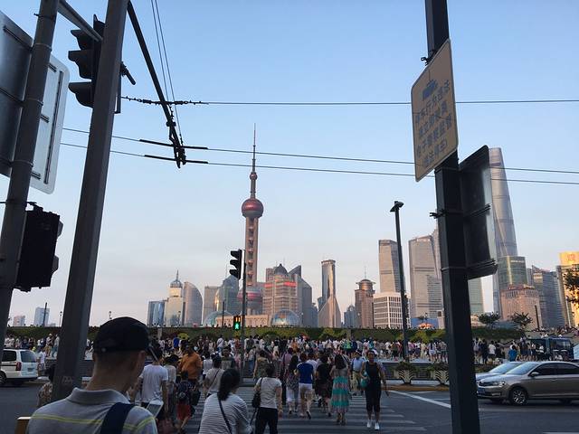 不管上海下午是多么的炎热,依旧挡不住游客。远处的东方明珠是那么的美!你们看到了吗?