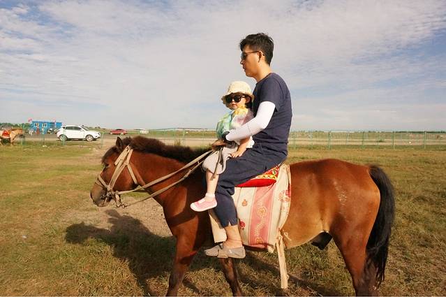中午带孩子稍休息,下午玩起。骑马,滑草,摩托,蒙古衣服拍照,花海观景,大致就这些了。宝贝十分迷恋滑翔机,非叫我给买一个,承诺,等她身高足够,一定要飞一次!