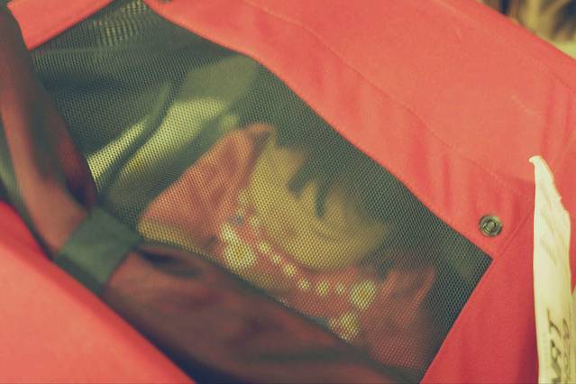 女儿第一次坐飞机,不过在订婴儿票时要了前排母婴座也没有蓝天白云看,一起飞就被我奶睡了。
