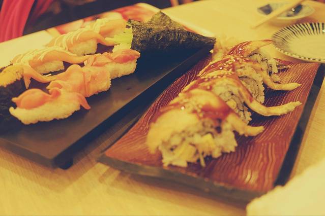 晚饭找了一家回转寿司店。