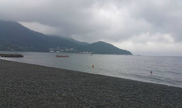 先来一张全景,可惜那天天气不是很好,那边刚下过雨,海边几乎没人。海水太凉了。