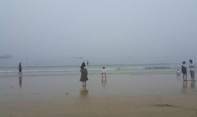 还是上次路过的那个沙滩,因雾大,人也没有多少。