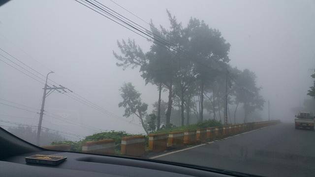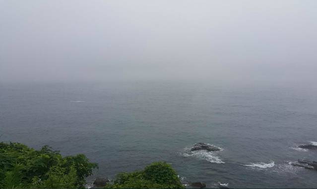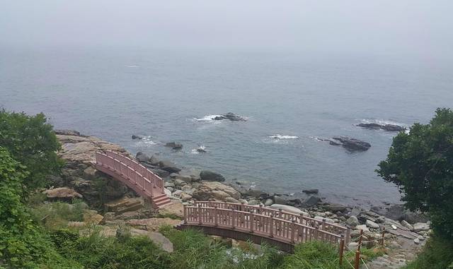 可能因为太早,也可能因为海边原来就经常起雾,路上竟然是这个样子的啊。
