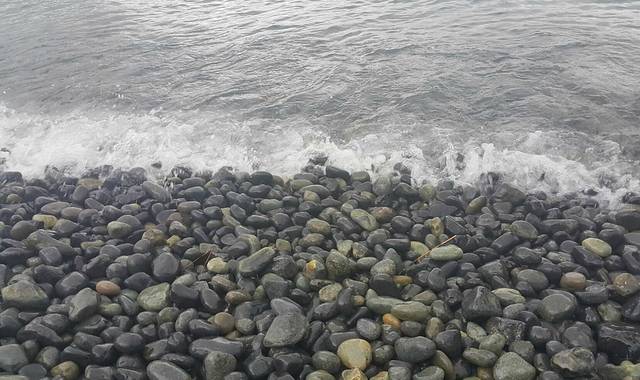 这里的海水清澈透明,最独特的一点是,这里的海边不是我们很常见的沙子,取而代之而是由一颗颗如黑珍珠般的鹅卵石。