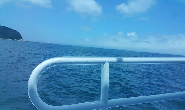等到风平浪静的时候,可以出来船窗,到外面扶着船舷或上到2层看看外面的海景。