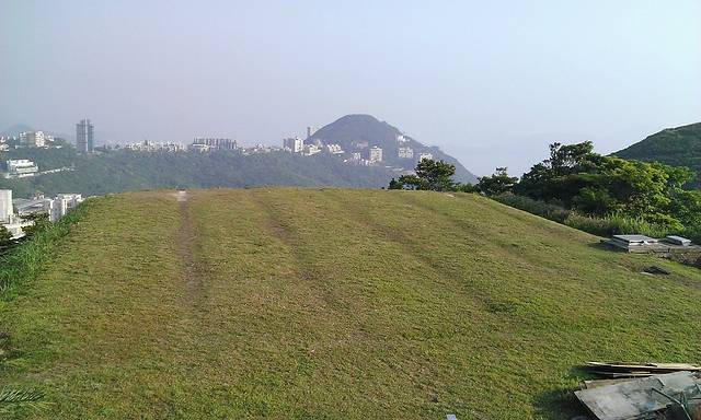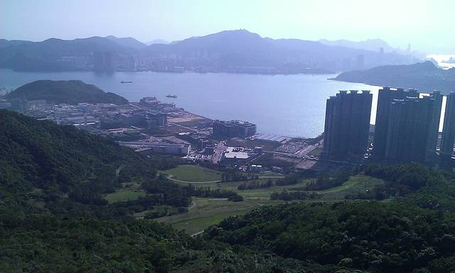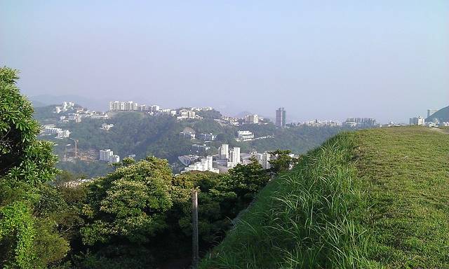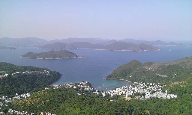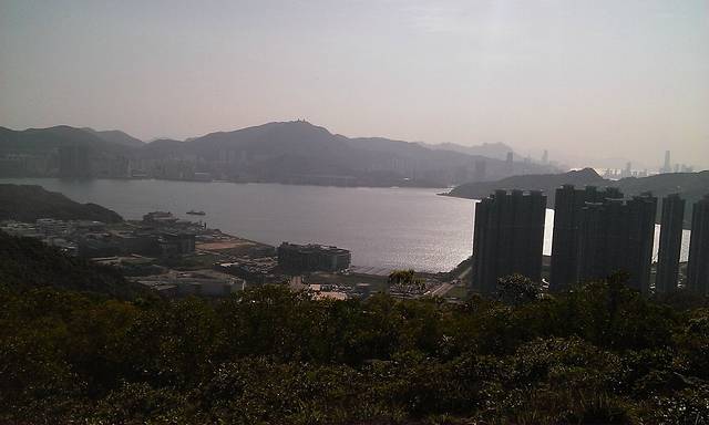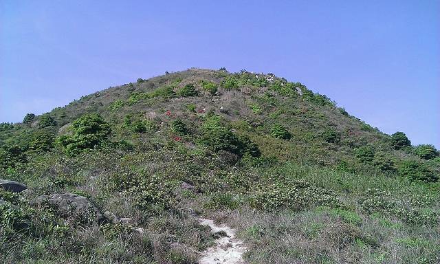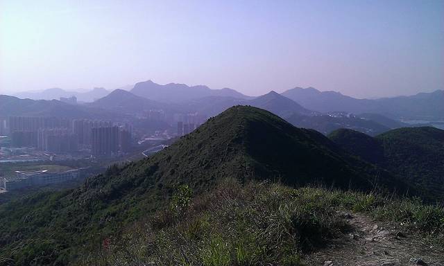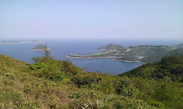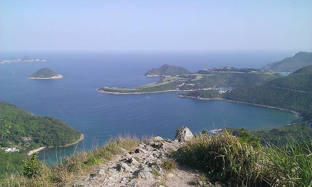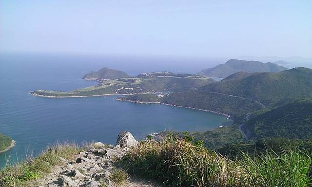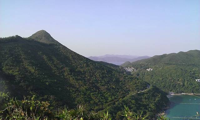 在将军澳,人相对较少。另外对于喜欢爬山的朋友可以去尝试下清水湾郊野公园里的钓鱼翁山,此山为香港第二陡峭的山峰,虽然海拔不高但是还是有些难度的,下图左边那个光秃秃的就是钓鱼翁山,可以在将军澳做小巴直达清水湾