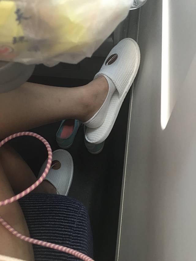 酒店拿了双一次性拖鞋,上车就换上,腿和脚都胀的不行了
