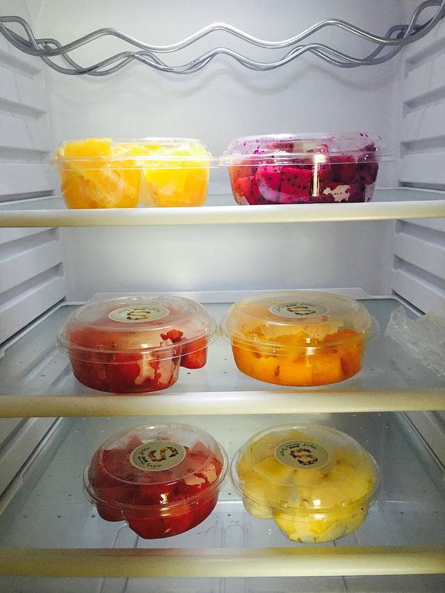 图图睡觉,给他定好了水果,放冰箱里