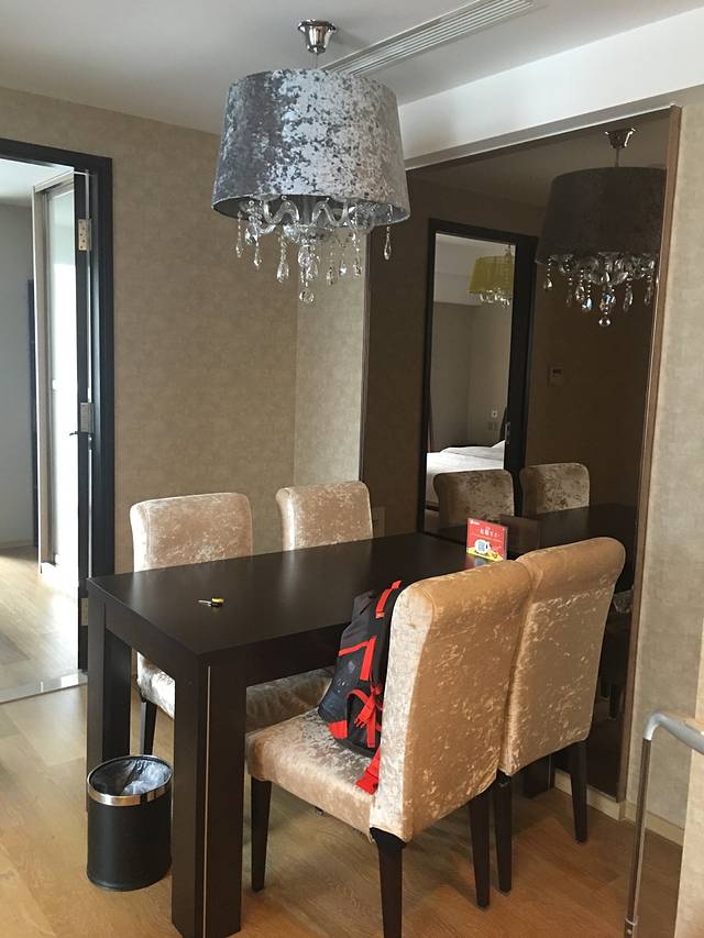 从机场叫优步到达酒店,这边的优步都是一口价,费用是不到25,如果叫出租车的话应该是30+,但怕出租车绕路,所以叫了优步,比较适合,住的位置是图爸定的,选在了星海广场附近,因为离玩的地方都挺近,酒店是我选的,这附近大都是酒店式公寓
