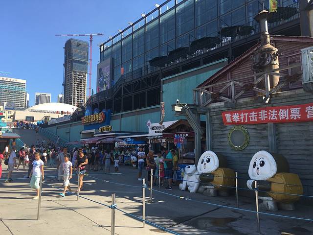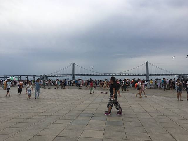 放下行李顺着星海广场的边逛边找饭吃,吃完饭就溜达到了海边