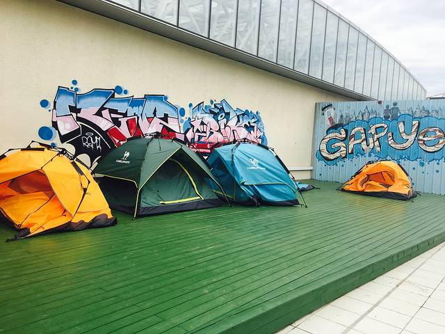 我不想下水,让图爸看孩子,趟帐篷里歇会儿
