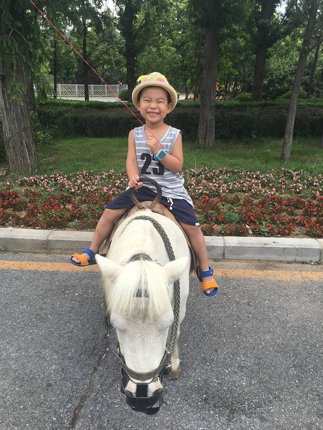 图图不敢和大象照相,不敢让大象卷,大象、小马都是20块钱照一次