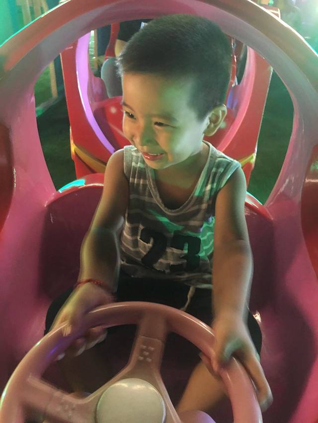 爷俩碰碰车碰美了,我这小胆,只有看着的份