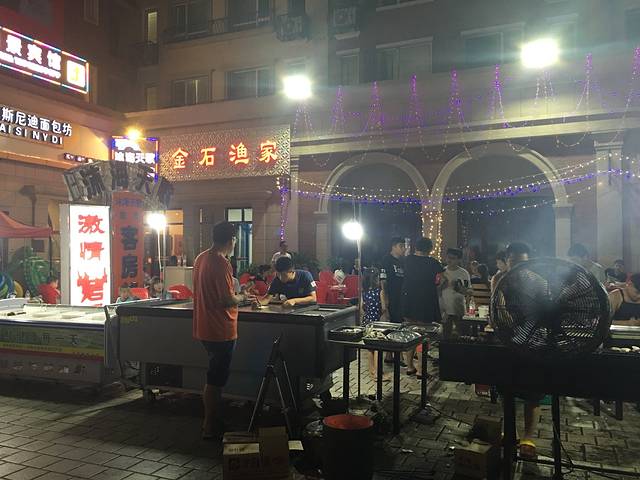 酒店这边很热闹,门口买点烧烤