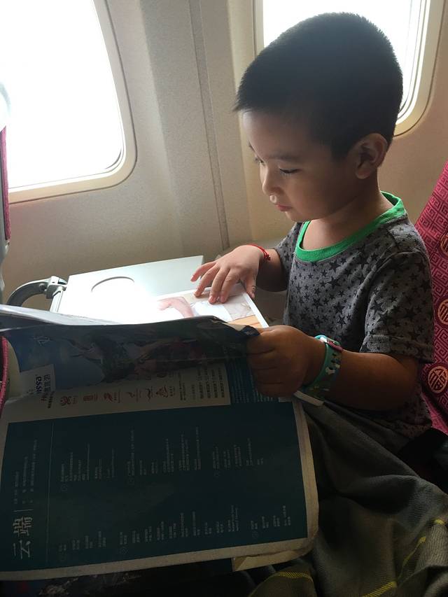 图图上了飞机就看杂志,我想问,你看得懂吗?