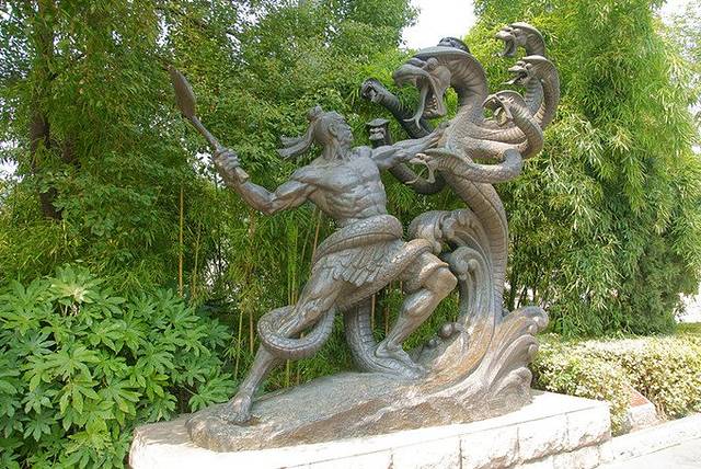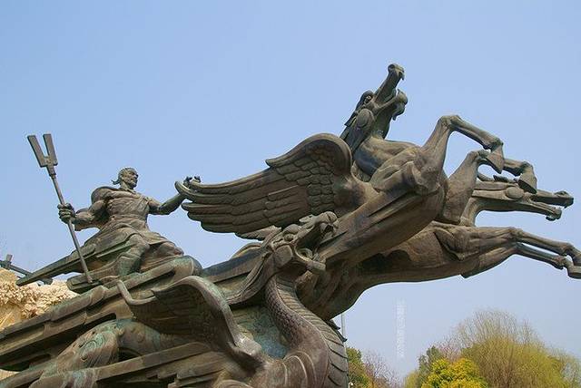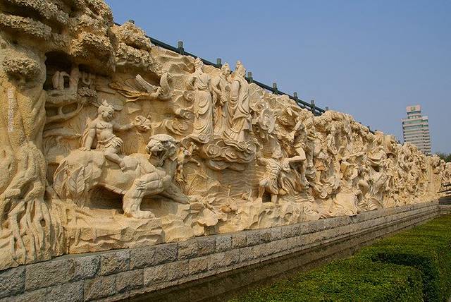 像这样的大型雕塑一共有十三座。这个场景为应龙助大禹治水。