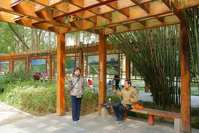 莲花湖分为一大一小上下两湖,中间有窄渠相连,上有小南桥。