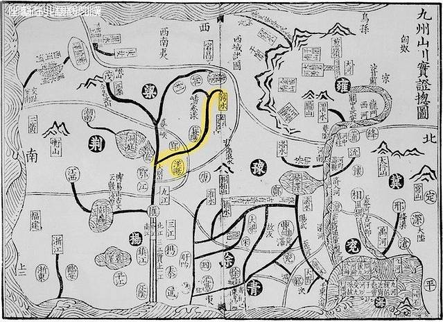 再看看《禹贡山川地理图》,为南宋程大昌所撰。其序中有“今且专以唐世地书为正”。序后第一张图便是“九州山川实证总图”。九州即大禹治水,天下所分九州。沔水即汉水,三国以前多称为沔水,三国以后多称为汉水。单单在宋以前,汉阳也是名副其实的。