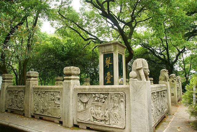园内有很多珍贵碑刻。其中伯牙台上的方碑相传为北宋大家米芾的手迹。