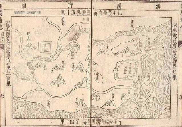 《湖广通志》中的汉阳府图也标出了大别山的位置。