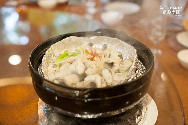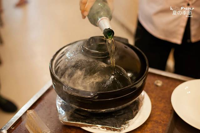 粤菜的精髓,其实就是在烹饪过程把食材本身的原味带出,所以会很依赖食材品质。吃饭当天,我就被头盘菜经验到了,如此细致讲究的做法。下面是滚烫的石头,先把生鱼片放上去,啤酒浇一遍,加热到6成熟,然后开始下调料,洋葱、胡萝卜丝、姜丝,混着米醋、水、酱油、白糖、盐调在一起倒进去。再盖上盖子,用啤酒浇一遍,