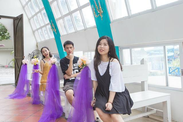 水世界真的有惊艳到我,岸边有一排整齐、五颜六色的小木屋,沿着小路走到底,便可看到一个教堂。开心的与小伙伴合影