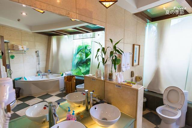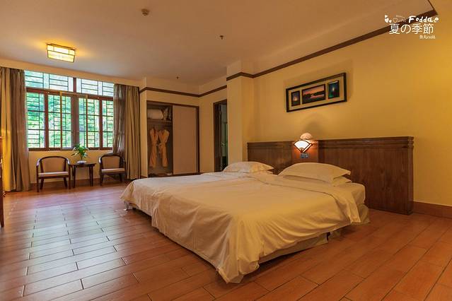 因为周末来古兜温泉度假的人很多,所以已经没有大床房了,贴心的服务生把我的床拼在了一起。