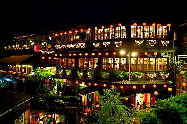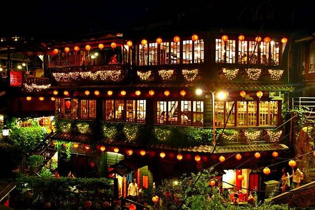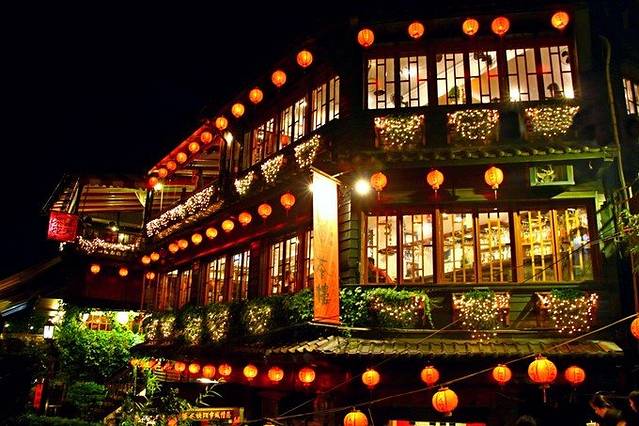 亮起红灯笼的茶楼夜景尤其迷人,为九份画上妩媚的妆容。