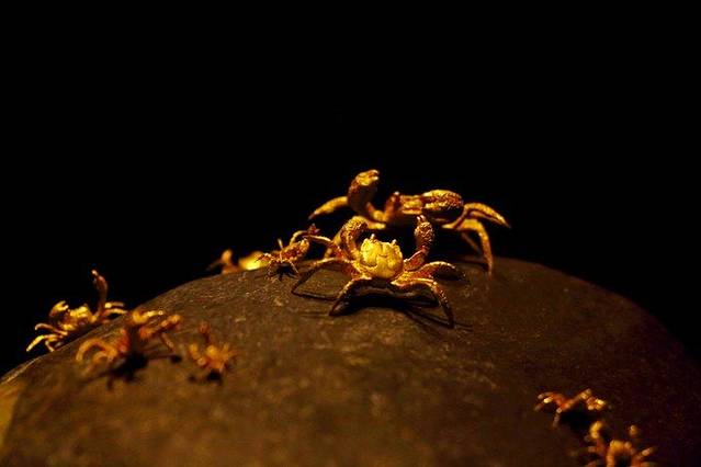 展品里我最喜欢的就是黄金蟹,别看照片里的它蛮大的,其实实物只不过是指甲那般大小的尺寸。