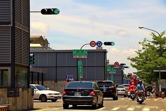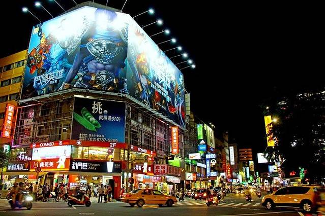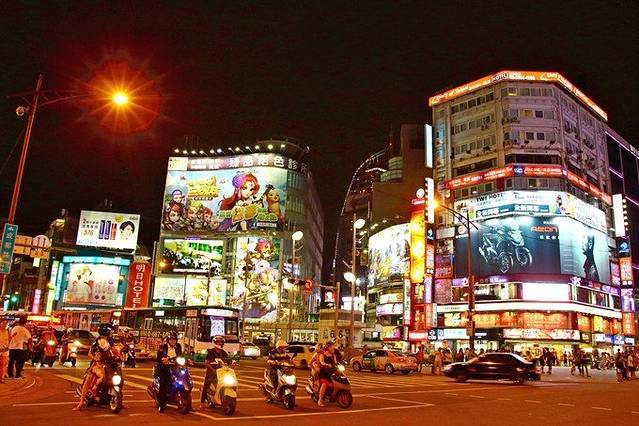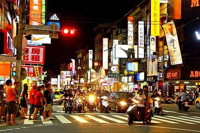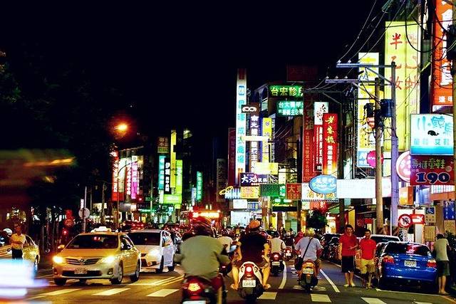 逢甲大学就在逢甲夜市旁边,逢甲大学正门前面的十字路口是拍夜街的好地方,很热闹。马路两旁密密麻麻的霓虹招牌,满大街的机车。别人游记里写的东西此时就在自己的眼前呈现出来,终于能亲身体验见识到了,这时才感觉到自己真的到台湾
