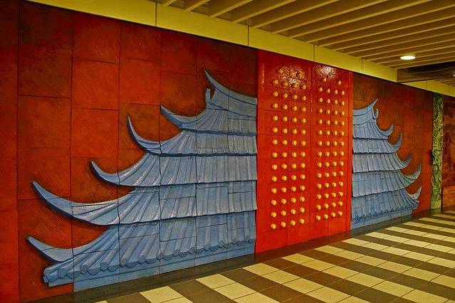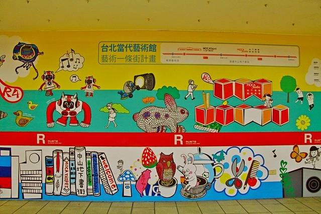 下榻的民宿附近的捷运站,生动有趣的壁雕。