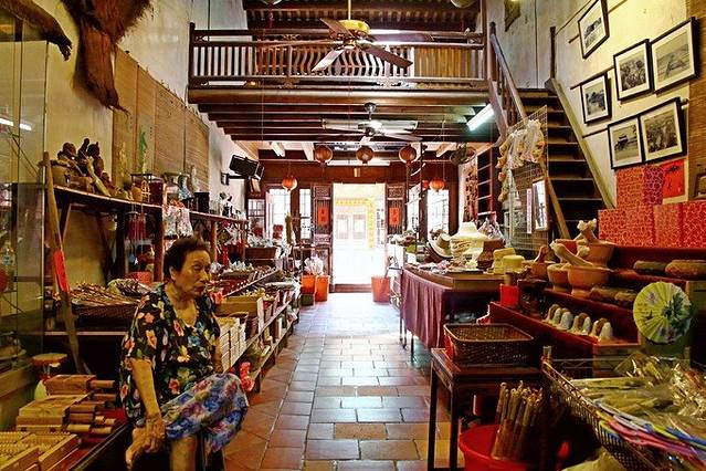 老婆婆的店里面的建筑结构和摆设很有历史感