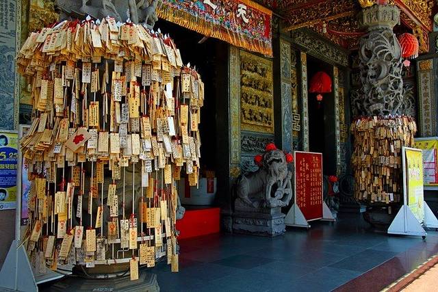 龙山寺不得不说的还有它的建筑,从门头到屋脊遍布细致繁复的彩绘或雕刻,雕梁画栋,庄严奢华,古色古香。庙堂里常年香烟袅袅,有的地方已经烟被熏得发黑,散发出浓浓的古朴气息。