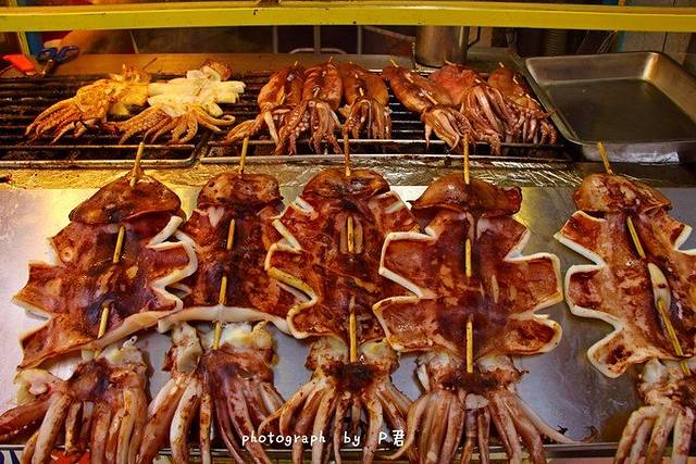 在街尾买了和一串比脸还要大的烤鱿鱼,连同浇上去的酱汁吃下去,味道五星好评!
