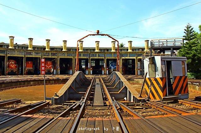 扇形车库从空中鸟瞰状似一把展开的扇子,因而被称为「扇形车库」。来彰化就是为了看这个扇形车库。这样的扇形车库全台湾原本有6个,现仅存彰化这一个还在用,其余五个都被拆除或改造。
