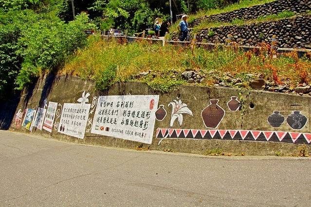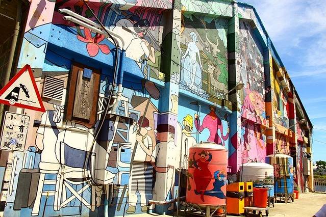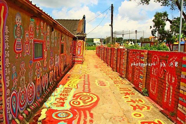 原以为要走一大段路,谁知没走多久就到了。彩虹眷村就在马路旁边。引入眼帘的就是画满画的墙和路。