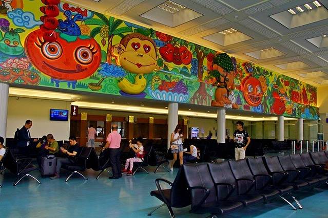 桃园机场曾在2014年获得全球“最佳消磨时间机场”第10名。从最早的14个特色主题候机室,发展到现在30余个主题候机室,各具特色,来得早或班机晚点的人可以逛一逛,很值得一看。我所在的候机室是以台湾水果为主题的,墙壁上的图画都是台湾的特色水果:红蜜西瓜、莲雾、百香果、释迦、火龙果。。。画风很萌很有趣。