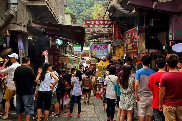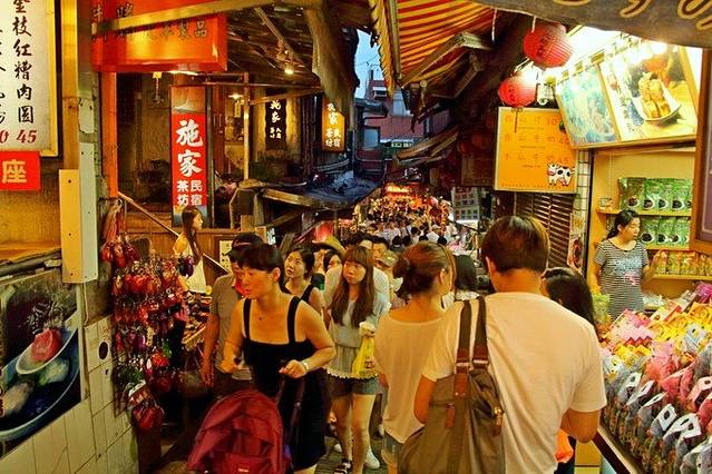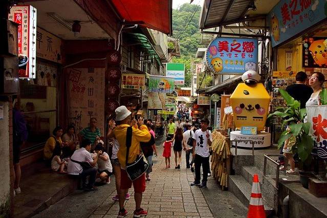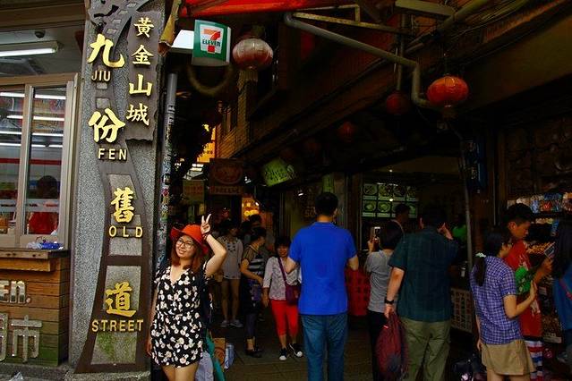 九份老街位于九分山城上,整条街的趋向是往上走,路上的地板是凹凸不平的石板路,富有山城的特色有很多创意小店和小吃店沿着蜿蜒的山路散落开来。